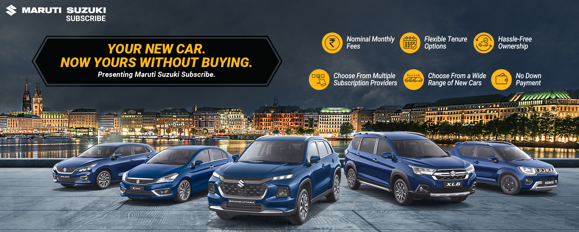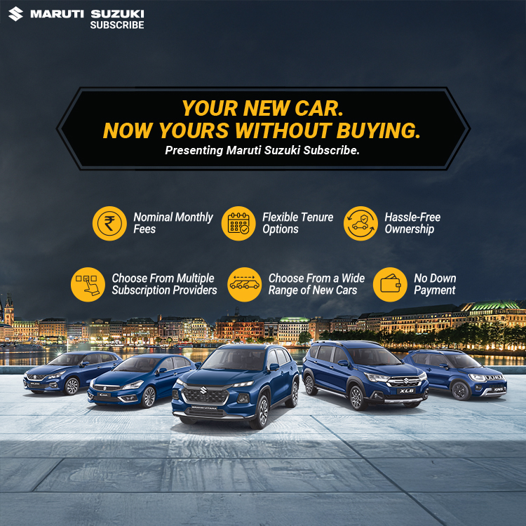 Maruti Suzuki Subscribe enables all customers to enjoy driving their preferred Maruti Suzuki cars without having to deal with all the financial responsibilities that come with owning a car.All you need to do is opt for a monthly subscription plan at a fixed monthly fee, which includes the routine maintenance and insurance costs, and choose a flexible tenure. At Rana Motors in, Manikpur, Gautam Budh Nagar, all Hatchback, Sedan, SUV, the MUV models line-up includes Baleno, Invicto, EVitara, Jimny, Ciaz, Ignis, Fronx, Grand Vitara, XL6. Here, you will enjoy Maruti Suzuki Subscribe benefits such as: